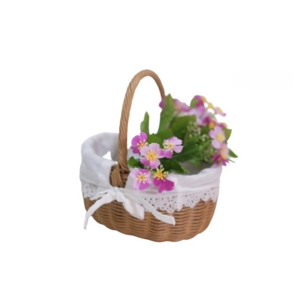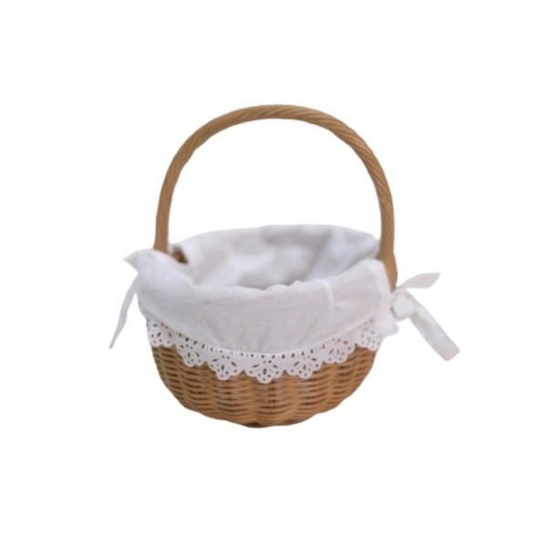 The original oval rattan basket with a rattan coiled handle has size details :